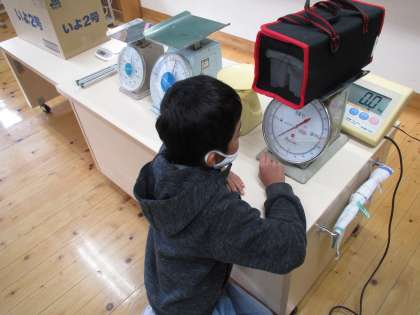 ものの重さは,色々な計器を使って量ることができると知った3年生。今日は,量りたいものに合う計器を選んで正しく計量しました。