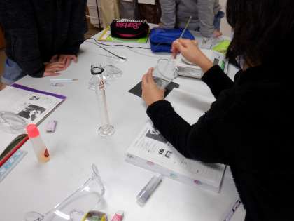 今日の学習問題は,「ものが水にとける量には限りがあるか」です。決まった量の水に食塩やミョウバンをとかしていって,どこまでとけるかを実験をして調べました。実験を通して,ものが水に溶ける量には限りがあるということを実感していました。