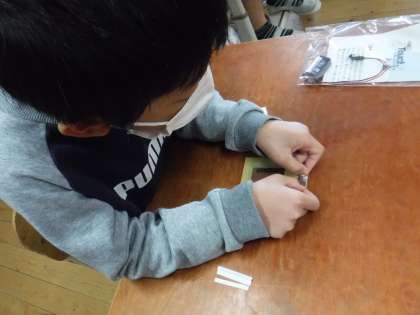 例年生き方探究館で行われる「モノづくり」の学習を,学校で行いました。