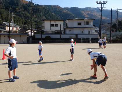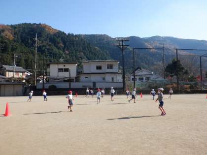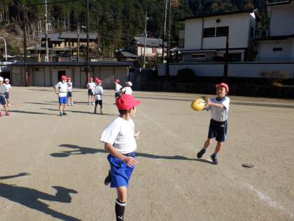 今日は,タグ取り鬼ごっこやパスゲームをすることで,タグやボールに慣れることから始めました。