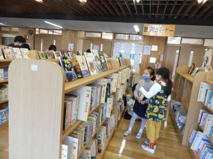冬休みに読書をしようと,2年生と6年生が本を借りにきていました。