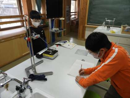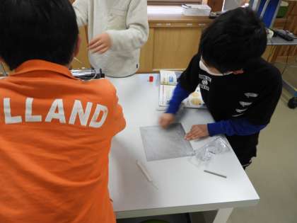 ろうを塗った板や棒を熱して,金属のあたたまり方を調べました。
