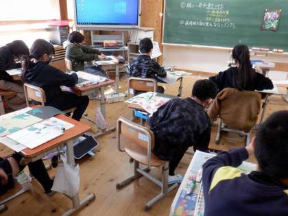 今日から版を刷る作業に入っています。絵の具や水の量に気を付けながら,丁寧に色を塗っていました。どんな作品が出来上がるのか楽しみですね。