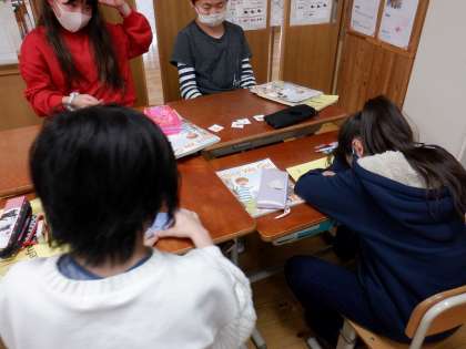 今日は「カード探し」をしました。一人が目をつぶっている間に,他の人がカードを隠します。それから,ものの場所をたずねる“Where is the 〜?”や,ものの位置を表す“on,in,under,by”の表現を使って,カードがどこに隠してあるかを当てます。楽しみながら,いろいろな英語表現に親しんでいました。