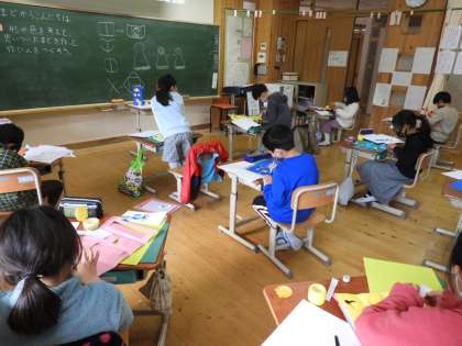 集中して,一生懸命作品づくりに取り組んでいます。
