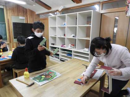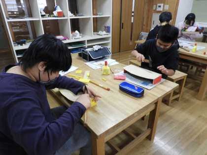 先日から取組んでいる本立ですが,今日は色を塗ったパーツをくぎや木工用ボンドを使って,組み立てました。