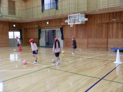 初めにドリブルゲームをしてから,試合を行いました。4年生が3年生に教えている姿も見られ,これからの学習が楽しみです。