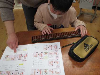 今日も引き続き,地域の方に教えていただき学習をしました。昨日の復習をした後,5の組み合わせを使った足し算や引き算に挑戦しました。昨日よりもスムーズに珠を動かすことができたと子どもたちは大喜び。楽しみながらも真剣に学習することができました。