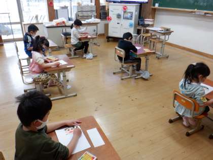 「えがお」「がんばる」「なかよく」の3つをキーワードに,目標を立てていきます。