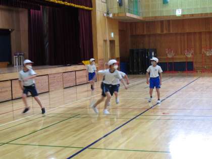 今日の体育も,3,4年合同で行いました。サーキットを入れたリレーやおにあそびなどをして,体をいっぱい動かすことができました。