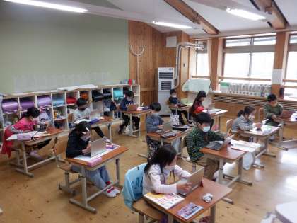 春の学校で見つけた生き物をタブレットで写真を撮り,Teamsを使って紹介し合いました。