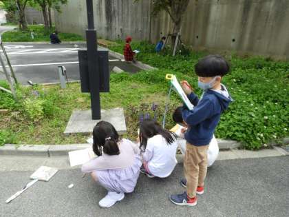 今日は植物や動物の色や形,様子に気を付けて観察しました。