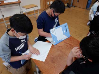 「好きな動物は何かな?」「好きな食べ物は?」などたくさん聞くことができました。今回聞いたインタビューは来週の『全校なかよし会』で発表します。