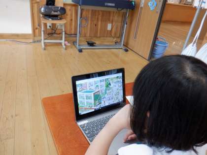 パソコンで印をつけて,交流しました。