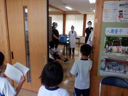 初めての体験にドキドキしながらも,しっかりと名前を言ったり挨拶をしたりできました。