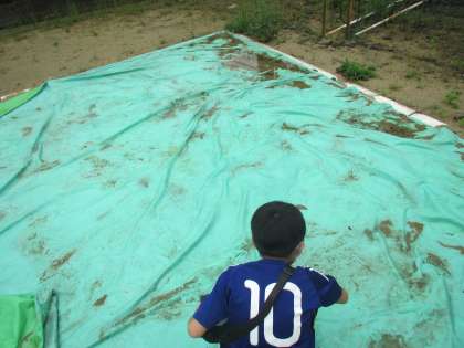 晴れの日の生き物は,雨の日では様子が変わるのだろうかということを調べました。晴れの日にはほとんど姿を見せることがなかったカエルやなめくじをたくさん見つけることができました。
