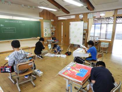 今日は仕上がった絵をみんなで鑑賞して,互いの作品の良いところや表したかった気持ちを交流しました。