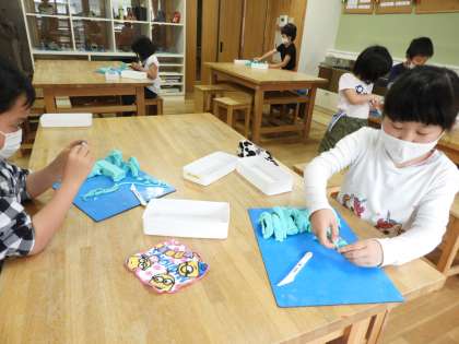 ねんどのひもで,面白い模様や形が出来上がりました。