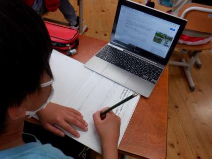 国語では,調べたことを相手に分かりやすく伝える学習をしています。今回はブラジルで行われている「アグロフォレストリー」という農業について調べたことをまとめ発表します。そこで今日は「アグロフォレストリーとは一体どんな方法で行うのか?」「アグロフォレストリーではどんな作物を育てるのか?」といったことをインターネットで調べました。