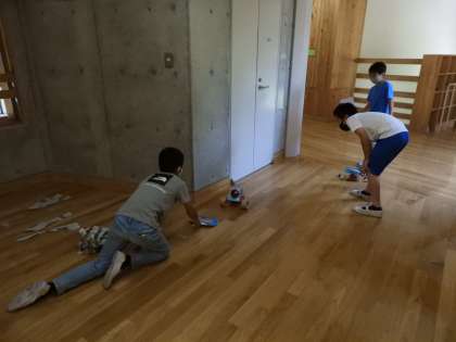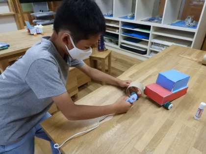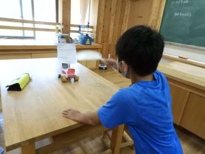 風を受けるための帆を作ったり,車体を軽くしたり様々な工夫をしながらつくることができました。出来上がった車を走らせて,満足そうな4年生。