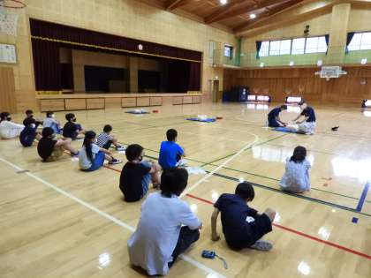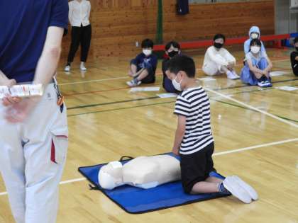 消防署の方においでいただき,5年生が救急救命学習を行いました。