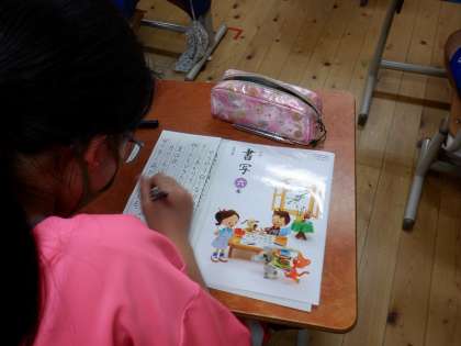 硬筆書写作品展に出展する作品づくりに取り組みました。6年生はサインペンで「枕草子」を視写します。お手本を見ながら一字一字丁寧に書いていました。