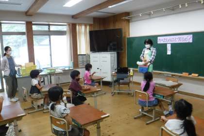 おなかの中の様子がわかるエプロンを見ながら,一生懸命考えました。