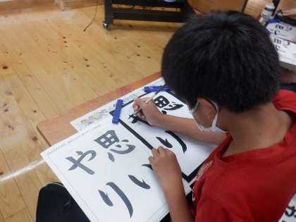 2学期最初の習字の学習があり「思いやり」を書きました。文字のつながりや配列に気をつけて,丁寧に書いていました。