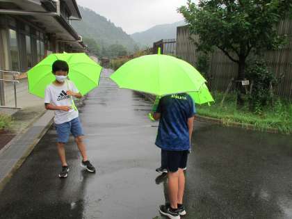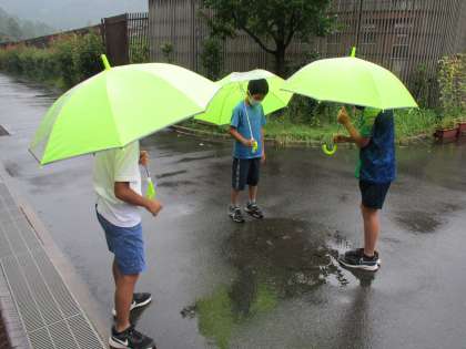 雨が降っている時と降った後の外の様子を調べに行きました。水たまりはなぜ消えたの?など,疑問をたくさん出すことができました。