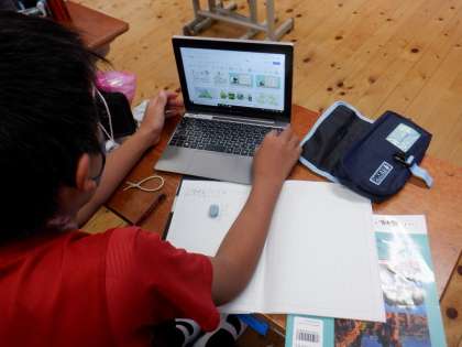 今日は,生物の「食べる食べられる関係」について,インターネットを使って調べました。「バッタはカエルに食べられて,カエルはヘビに食べられるよ。」などと,いろいろな生物の食物連鎖の関係を調べることができました。