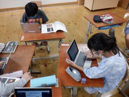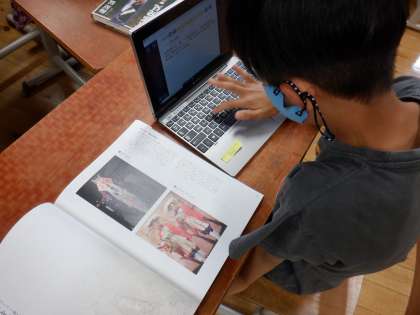資料を使ったり,インターネットで調べたり,一人一人が課題をもって調べています。今後どうのよな形で発表してくれるのか楽しみです。