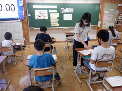 5年生 視力検査前の姿勢指導