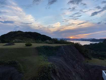 入室後,今日はお風呂の時間が早いので、きれいな夕陽を眺めながらの入浴となりました。