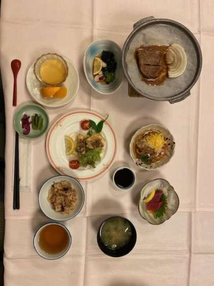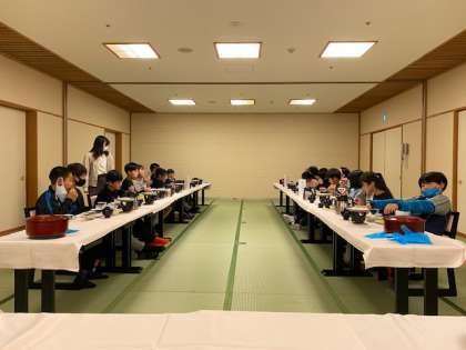 お風呂のあとは待ちに待った夕食です。品数豊富,ボリューム満点の豪華な食事で,みんなお腹いっぱいになったようです。