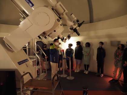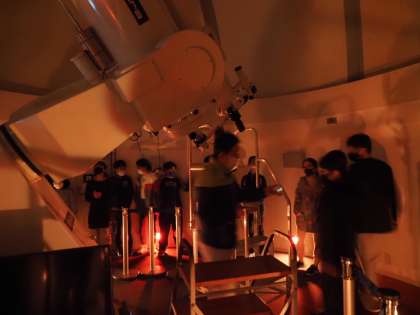 あいにくの曇り空でしたが、それでも淡路島最大の望遠鏡で月を見せていただきました。薄雲越しではありましたが、クレーターも見ることができました。