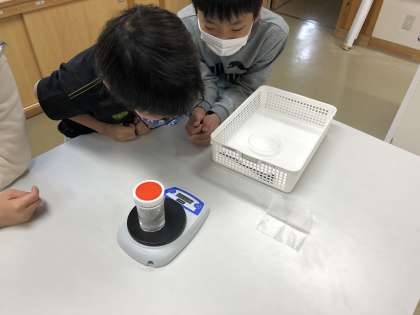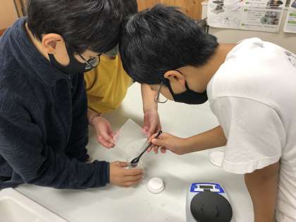 理科の学習は「もののとけ方」の学習をしています。食塩を混ぜた水溶液の重さはどのようになるのかを実験しました。水溶液になっても重さは変わらないことが分かりました。