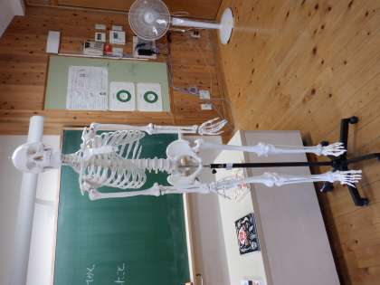 今日は,腕以外の骨の働きや動き方を調べました。模型や図鑑など,各々で決めたものを用いて調べていました。