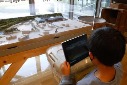 ラミネートした自分の写真を使って,見慣れた場所の新しい面白さを見つける学習をしました。