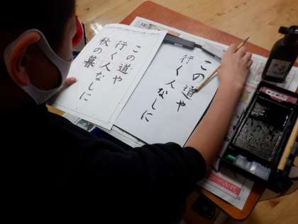 今回は小筆を使って松尾芭蕉の俳句を書きました。配列や文字の大きさに気をつけて丁寧に書いていました。