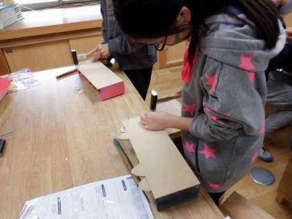 今日は釘打ちとニス塗りをして仕上げました。素敵な作品が出来上がりました。