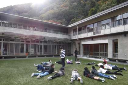 中庭で撮影を行いました。