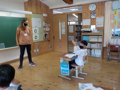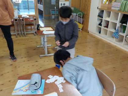 好きな果物をたずねたり答えたりしながらパフェをつくり,紹介し合いました。