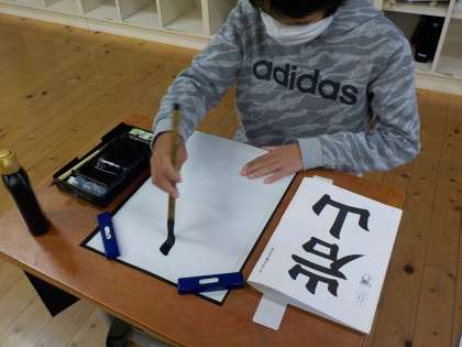 書写の学習では,組み立てに気をつけて「岩山」を書きました。
