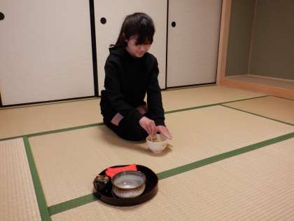 先日の茶道教室で教えて頂いたことを思い出して,お茶を点てる様子を再現していました。