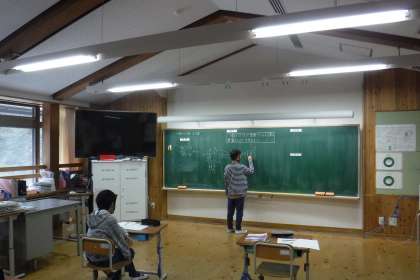 小数点を書きながらわり算をしていくのが難しいのですが,4年生の子どもたちは一生懸命取り組んでいました。