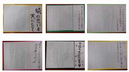 国語では「座右の銘 紹介文」を書きました。紹介文では,自分の経験と結び付けて,これまで自分自身がどのような生き方をしてきたか,座右の銘を知って考え方やものの見方がどのように変わったのかを書きました。一人一人がしっかりと自分自身を見つめ直して紹介文を書いていました。