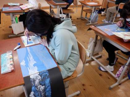 先日から挑戦していた一版多色版画も完成へと近づいています。背景を考えながら色を塗り重ねたり,色の組み合わせを想像したり,思いを込めて作品を作り上げています。