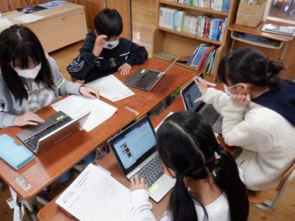 5年生は総合的な学習の時間で八瀬の伝統文化を調べています。自分たちで調べたり,ゲストティーチャーの方に話を聞いたりしていました。今までの学習を次回の発表につなげたいと思います。今日はその準備をしていました。
