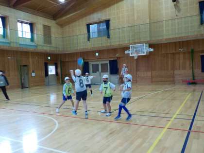 今学期最後の体育の学習も,3,4年でポートボールに取り組みました。