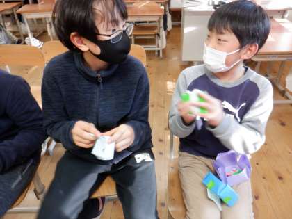 学級でクリスマス会をしました。係で企画し,いろいろな遊びを考えて楽しみました。途中からサンタクロースも登場し,みんなで仲良く遊べたのがよかったです。